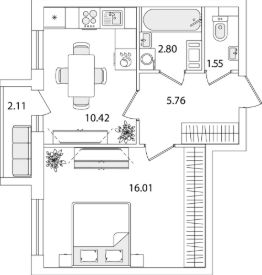 Квартира находится в 9 этажном доме, в Очередь 1, Корпус 1 на 9 этаже. Общая площадь квартиры 37,60 кв.м.