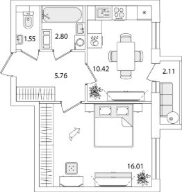 Квартира находится в 9 этажном доме, в Очередь 1, Корпус 1 на 9 этаже. Общая площадь квартиры 37,60 кв.м.