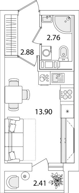 Квартира находится в 9 этажном доме, в Очередь 1, Корпус 1 на 9 этаже. Общая площадь квартиры 20,75 кв.м.