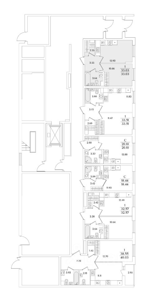 Квартира находится в 9 этажном доме, в Очередь 1, Корпус 1 на 1 этаже. Общая площадь квартиры 33,03 кв.м.