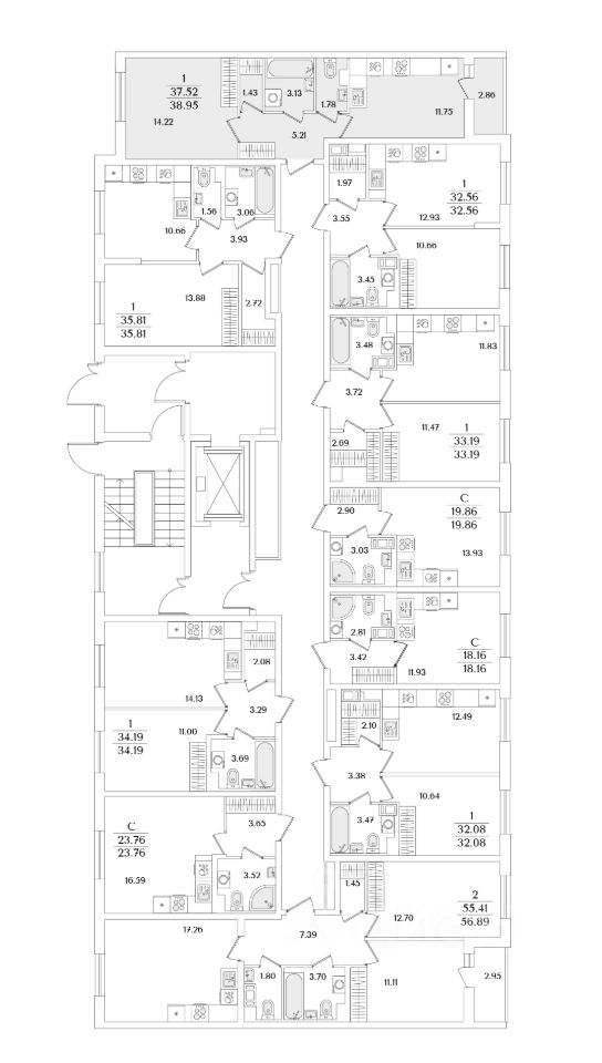 Квартира находится в 9 этажном доме, в Очередь 1, Корпус 1 на 2 этаже. Общая площадь квартиры 38,95 кв.м.