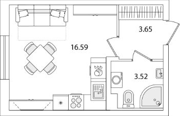 Квартира находится в 9 этажном доме, в Очередь 1, Корпус 1 на 2 этаже. Общая площадь квартиры 23,76 кв.м.