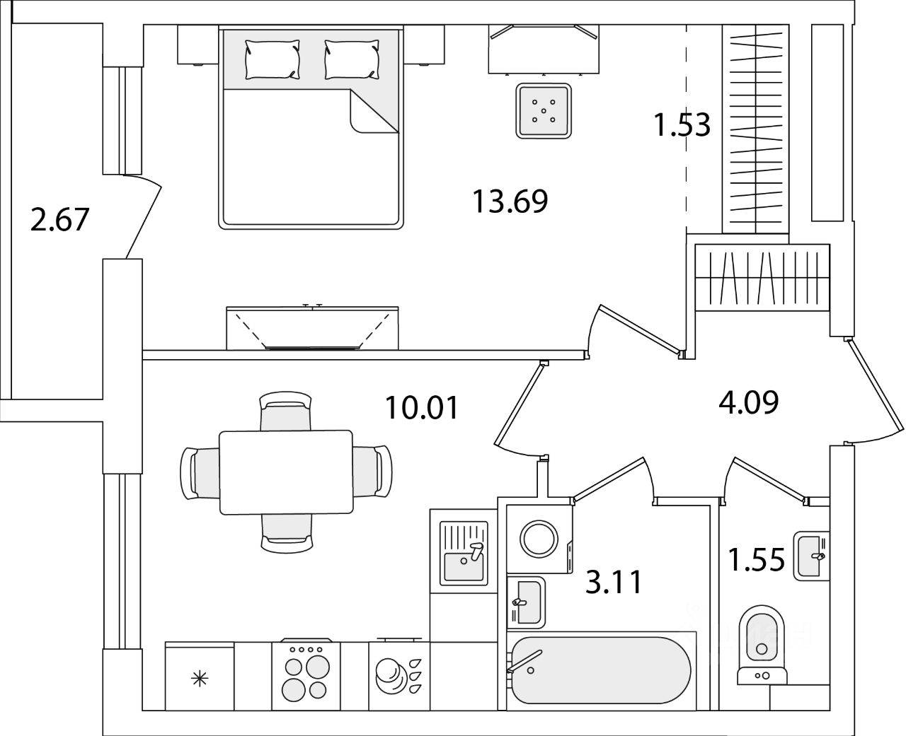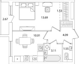 Квартира находится в 9 этажном доме, в Очередь 1, Корпус 1 на 3 этаже. Общая площадь квартиры 35,32 кв.м.