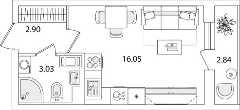 Квартира находится в 9 этажном доме, в Очередь 1, Корпус 1 на 5 этаже. Общая площадь квартиры 23,40 кв.м.