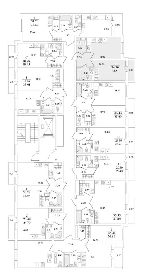 Квартира находится в 9 этажном доме, в Очередь 1, Корпус 1 на 6 этаже. Общая площадь квартиры 35,51 кв.м.