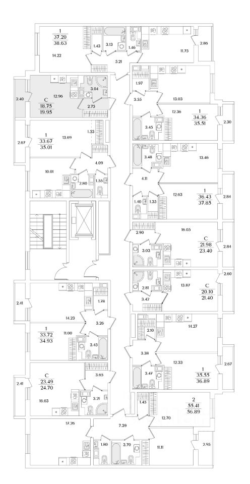 Квартира находится в 9 этажном доме, в Очередь 1, Корпус 1 на 8 этаже. Общая площадь квартиры 19,95 кв.м.