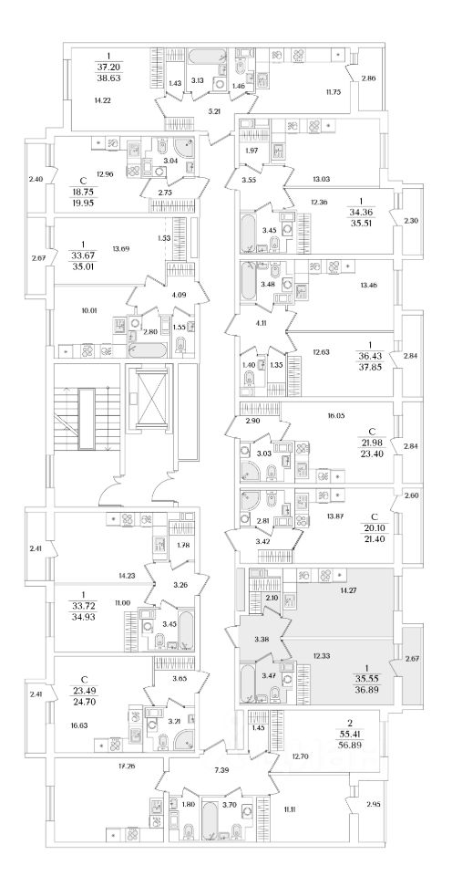 Квартира находится в 9 этажном доме, в Очередь 1, Корпус 1 на 8 этаже. Общая площадь квартиры 36,89 кв.м.