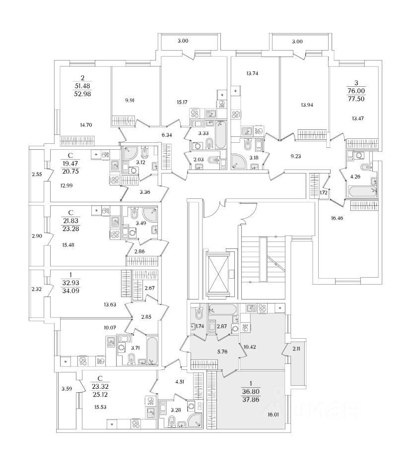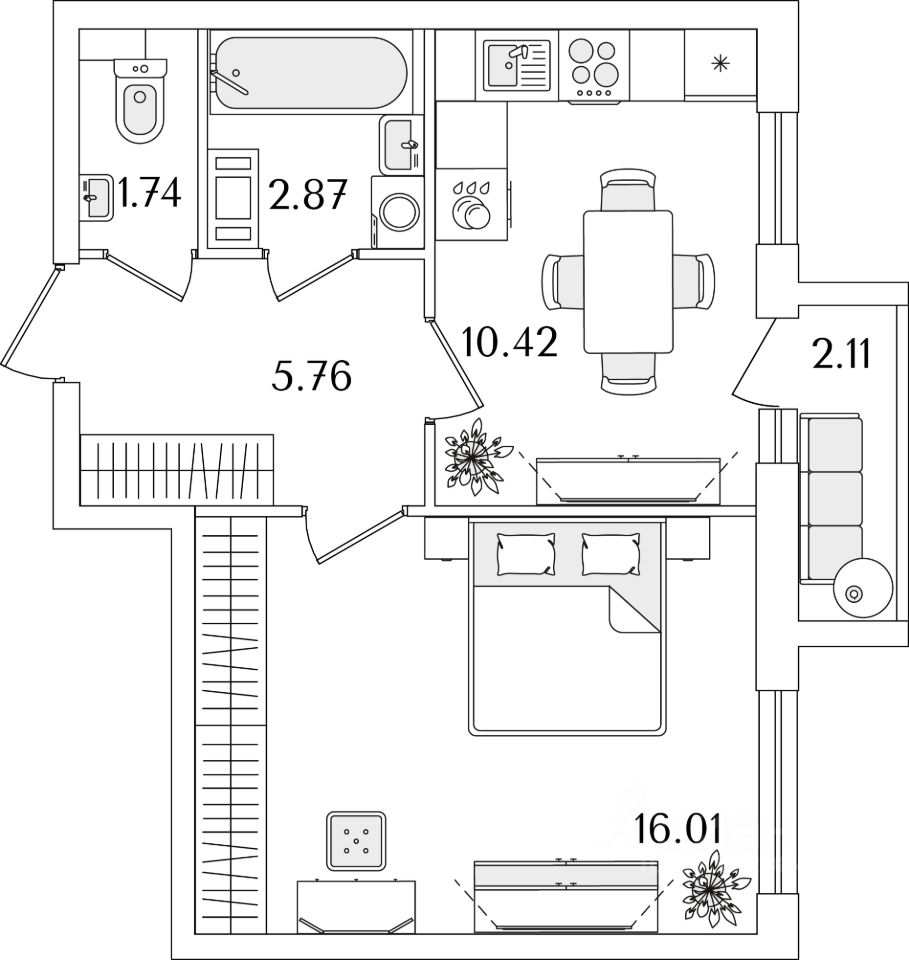 Квартира находится в 9 этажном доме, в Очередь 1, Корпус 2 на 7 этаже. Общая площадь квартиры 37,86 кв.м.
