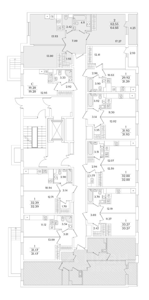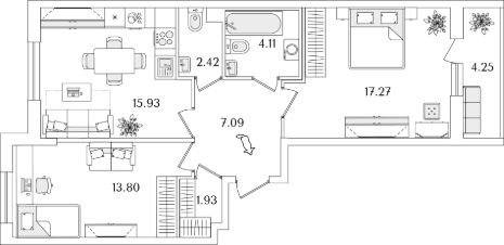 Квартира находится в 9 этажном доме, в Очередь 1, Корпус 2 на 2 этаже. Общая площадь квартиры 64,68 кв.м.