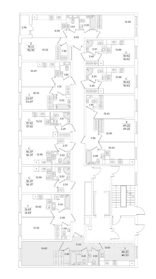 Квартира находится в 9 этажном доме, в Очередь 1, Корпус 2 на 2 этаже. Общая площадь квартиры 40,23 кв.м.