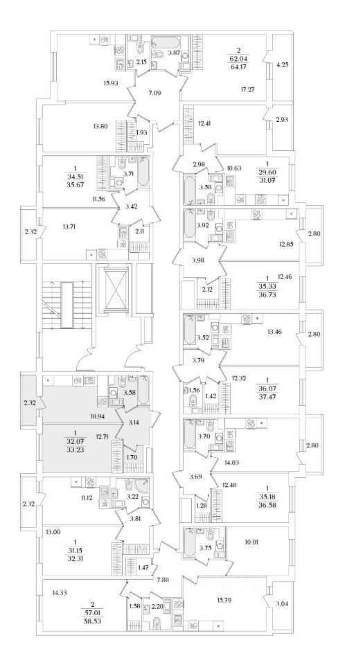 Квартира находится в 9 этажном доме, в Очередь 1, Корпус 2 на 3 этаже. Общая площадь квартиры 33,23 кв.м.