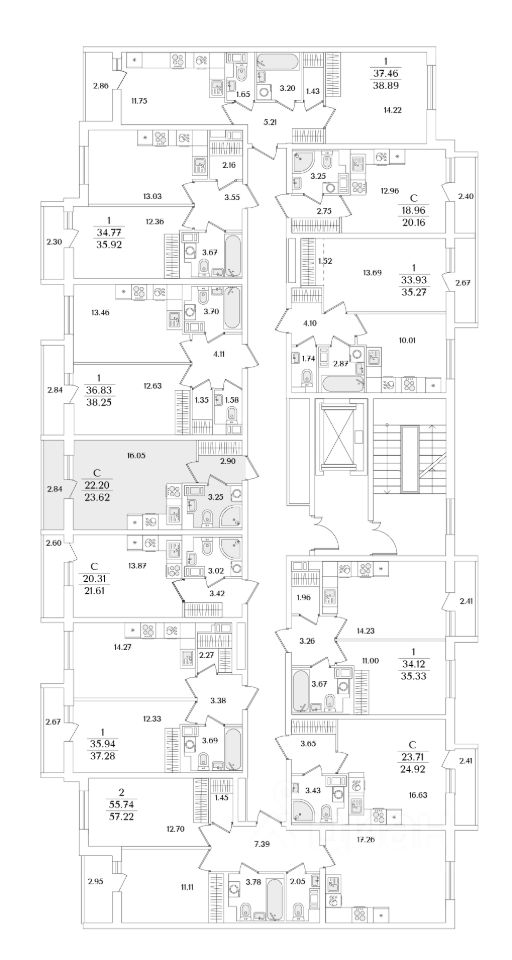 Квартира находится в 9 этажном доме, в Очередь 1, Корпус 2 на 4 этаже. Общая площадь квартиры 23,62 кв.м.