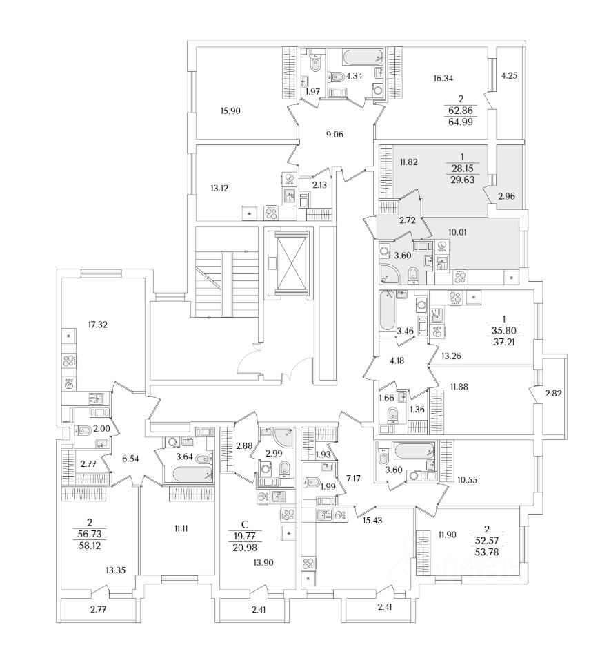 Квартира находится в 9 этажном доме, в Очередь 1, Корпус 2 на 5 этаже. Общая площадь квартиры 29,63 кв.м.