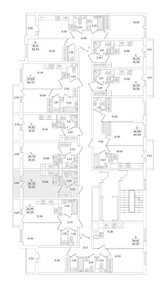 Квартира находится в 9 этажном доме, в Очередь 1, Корпус 2 на 5 этаже. Общая площадь квартиры 21,62 кв.м.