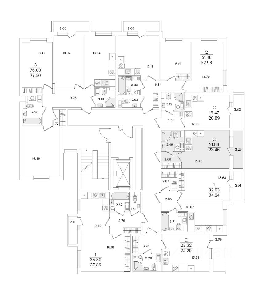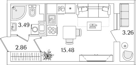 Квартира находится в 9 этажном доме, в Очередь 1, Корпус 2 на 6 этаже. Общая площадь квартиры 23,46 кв.м.