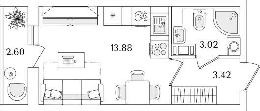 Квартира находится в 9 этажном доме, в Очередь 1, Корпус 2 на 6 этаже. Общая площадь квартиры 21,62 кв.м.