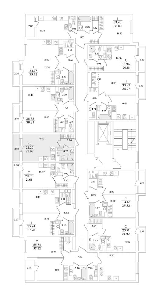 Квартира находится в 9 этажном доме, в Очередь 1, Корпус 2 на 6 этаже. Общая площадь квартиры 23,62 кв.м.