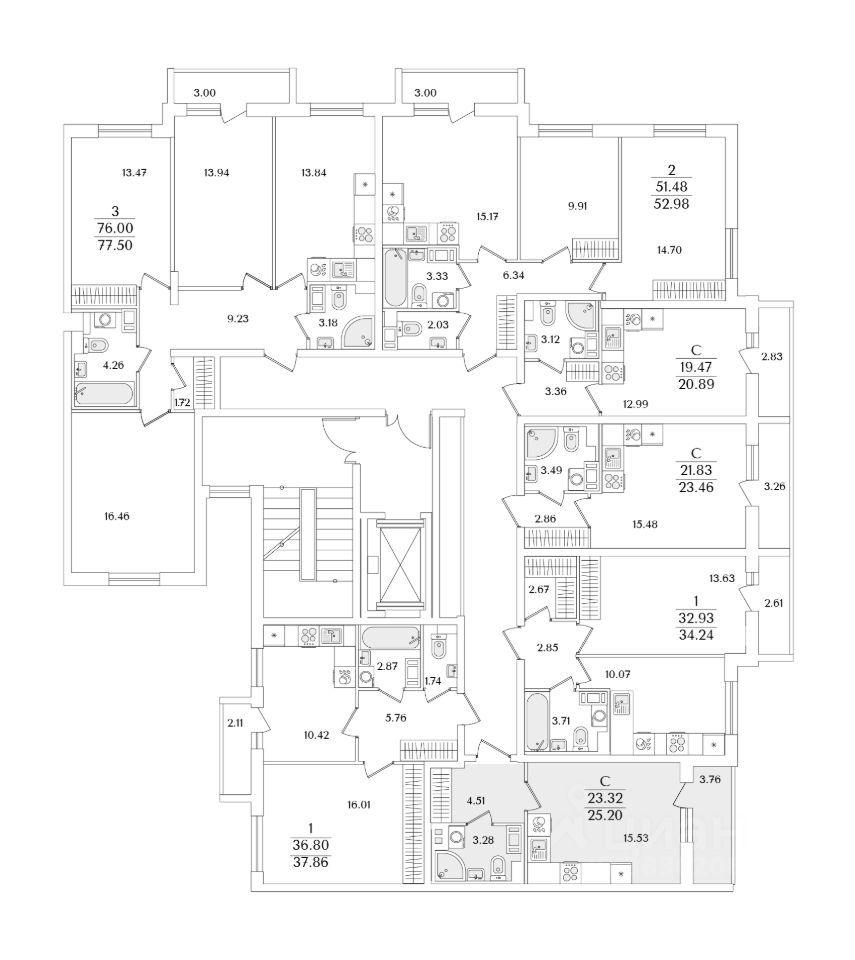 Квартира находится в 9 этажном доме, в Очередь 1, Корпус 2 на 7 этаже. Общая площадь квартиры 25,20 кв.м.