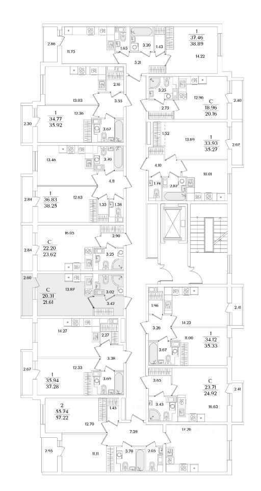 Квартира находится в 9 этажном доме, в Очередь 1, Корпус 2 на 7 этаже. Общая площадь квартиры 21,61 кв.м.