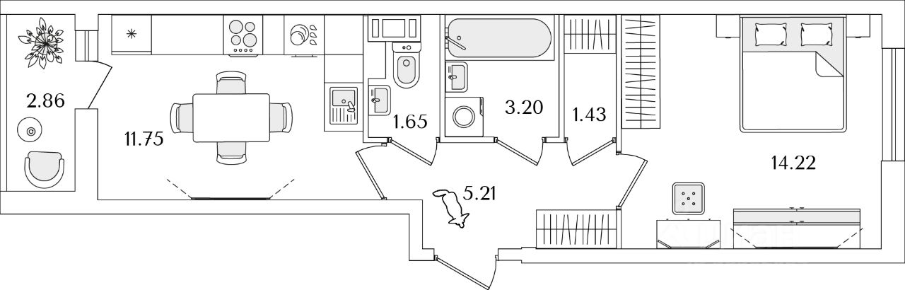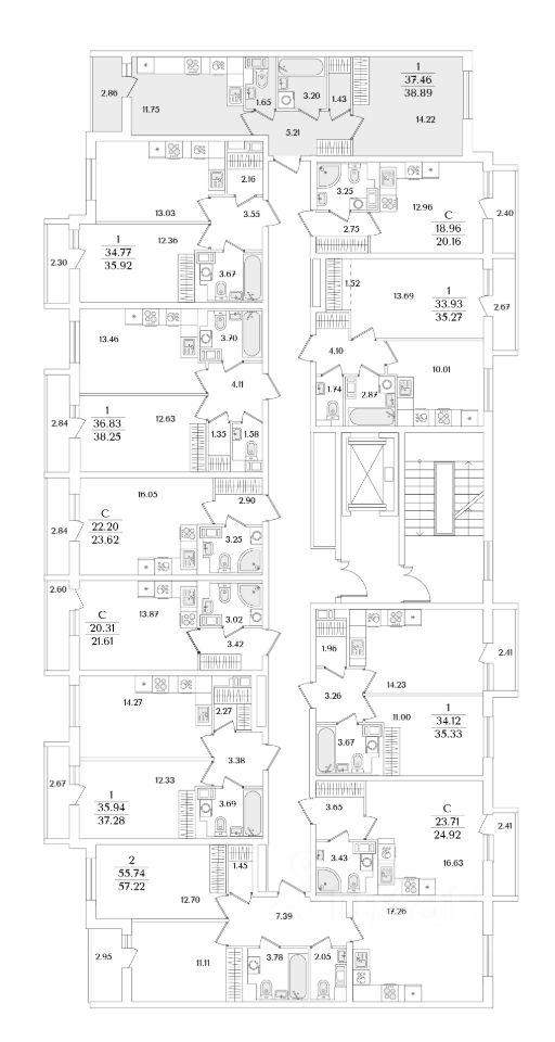 Квартира находится в 9 этажном доме, в Очередь 1, Корпус 2 на 7 этаже. Общая площадь квартиры 38,89 кв.м.