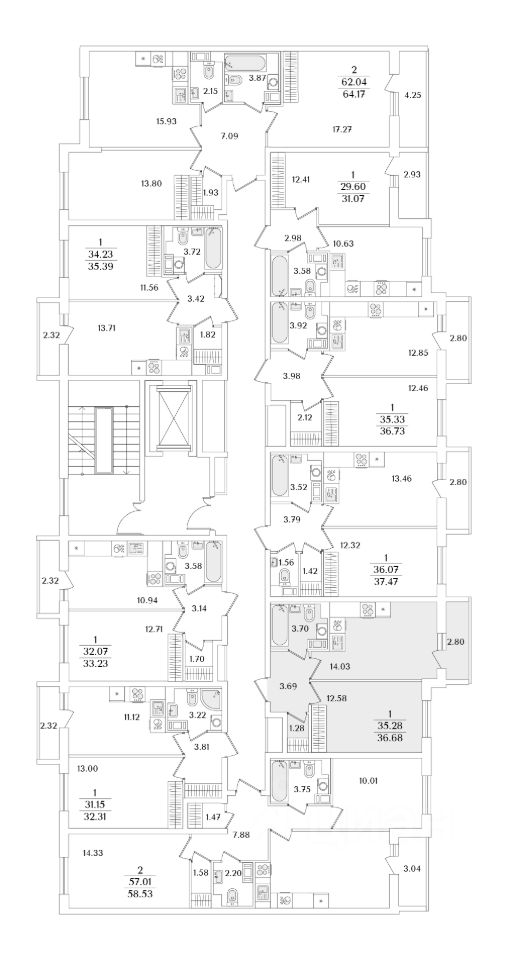 Квартира находится в 9 этажном доме, в Очередь 1, Корпус 2 на 8 этаже. Общая площадь квартиры 36,68 кв.м.