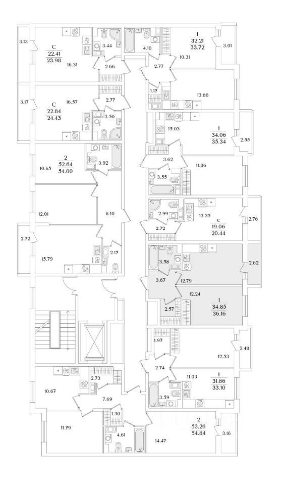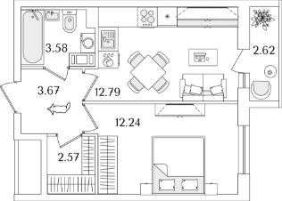 Квартира находится в 9 этажном доме, в Очередь 1, Корпус 2 на 8 этаже. Общая площадь квартиры 36,16 кв.м.