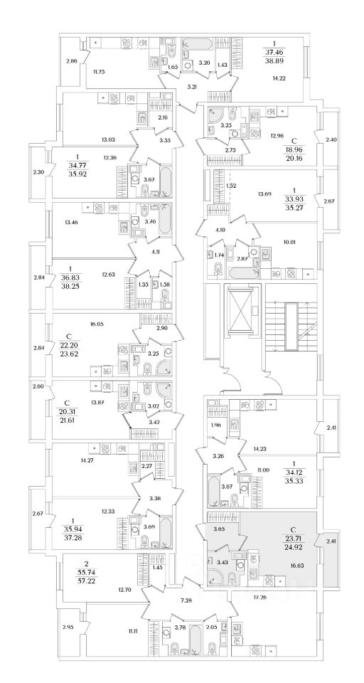 Квартира находится в 9 этажном доме, в Очередь 1, Корпус 2 на 8 этаже. Общая площадь квартиры 24,92 кв.м.