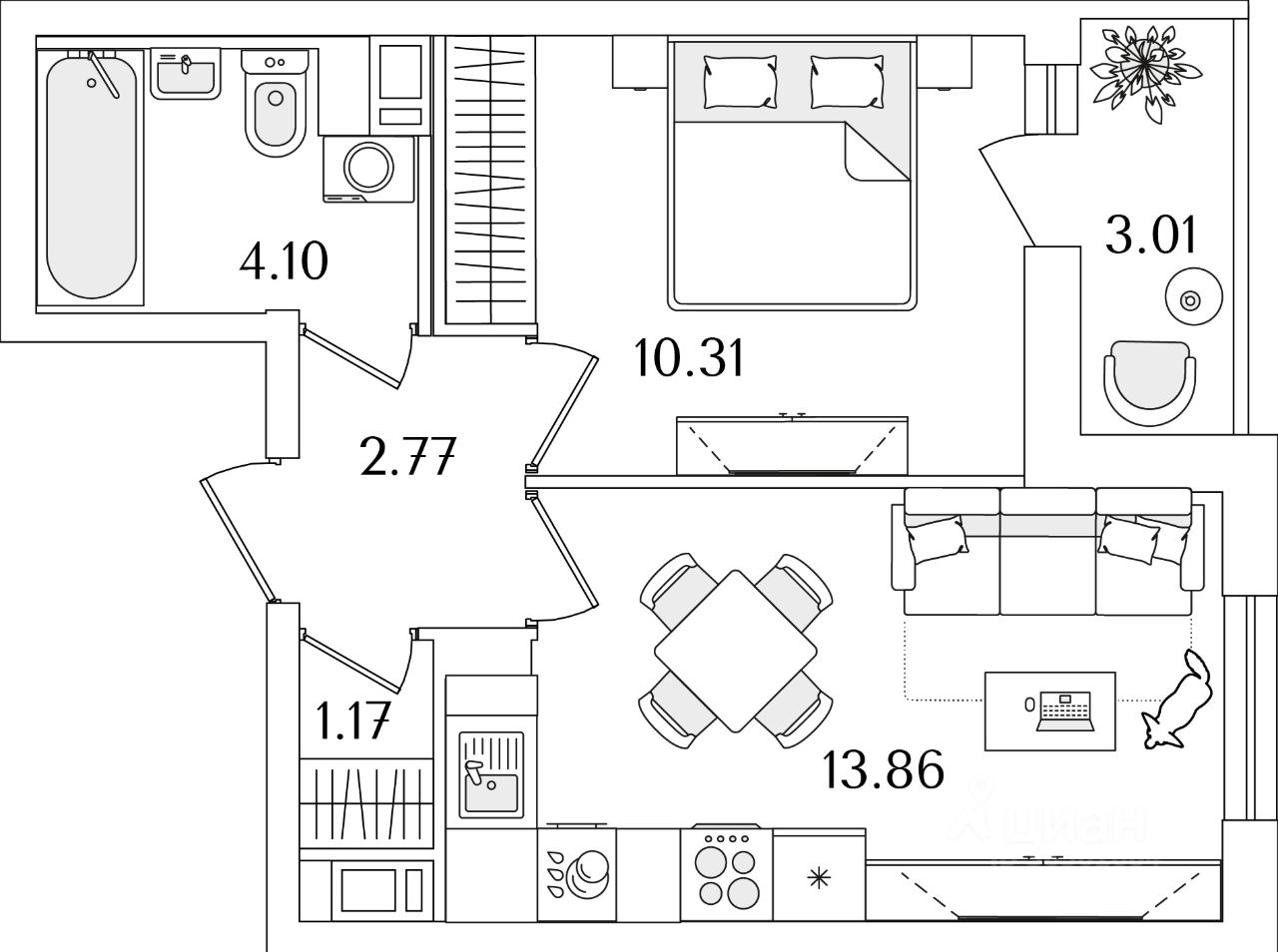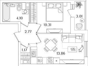 Квартира находится в 9 этажном доме, в Очередь 1, Корпус 2 на 9 этаже. Общая площадь квартиры 33,72 кв.м.