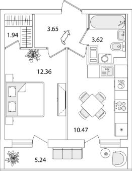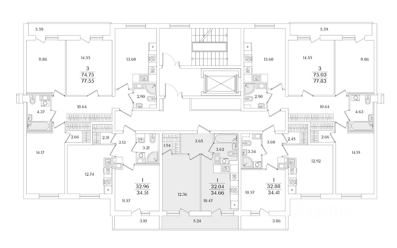 Квартира находится в 9 этажном доме, в Очередь 1, Корпус 2 на 9 этаже. Общая площадь квартиры 34,66 кв.м.