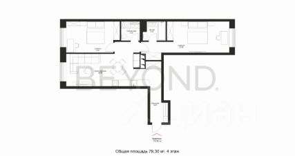 Предлагается квартира площадью 79 кв. м с новой отделкой - 2 спальни.