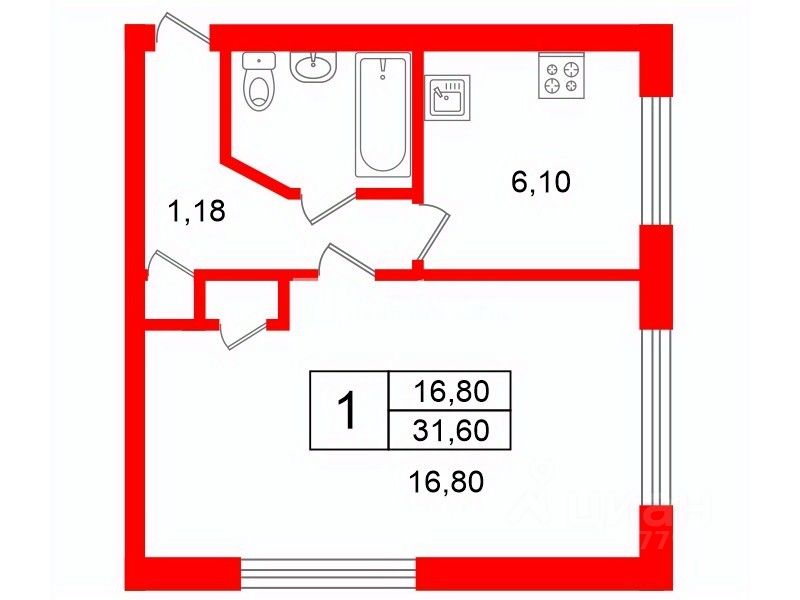 16,8 м²