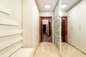 В квартире выполнен профессиональный высококачественный ремонт по дизайнерскому проекту, максимально раскрывающий все преимущества планировки и позволяющий наиболее рационально использовать каждый квадратный метр. В ремонте использованы премиальные материалы, устроена дополнительная шумоизоляция. Квартира укомплектована мебелью и бытовой техникой от ведущих производителей. Панорамные окна в квартире обеспечивают потрясающий вид на город.