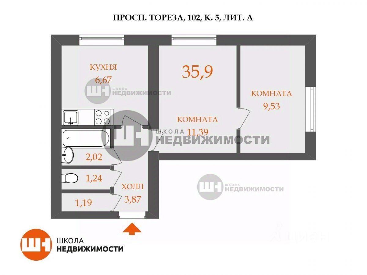 Обретите свой уютный уголок в Выборгском районе! Продается двухкомнатная квартира в кирпичном доме на проспекте Тореза, д. 102, корп. 5, лит. А. Дом кооперативный, строился по проекту 1-528-КП для ЖСК.
