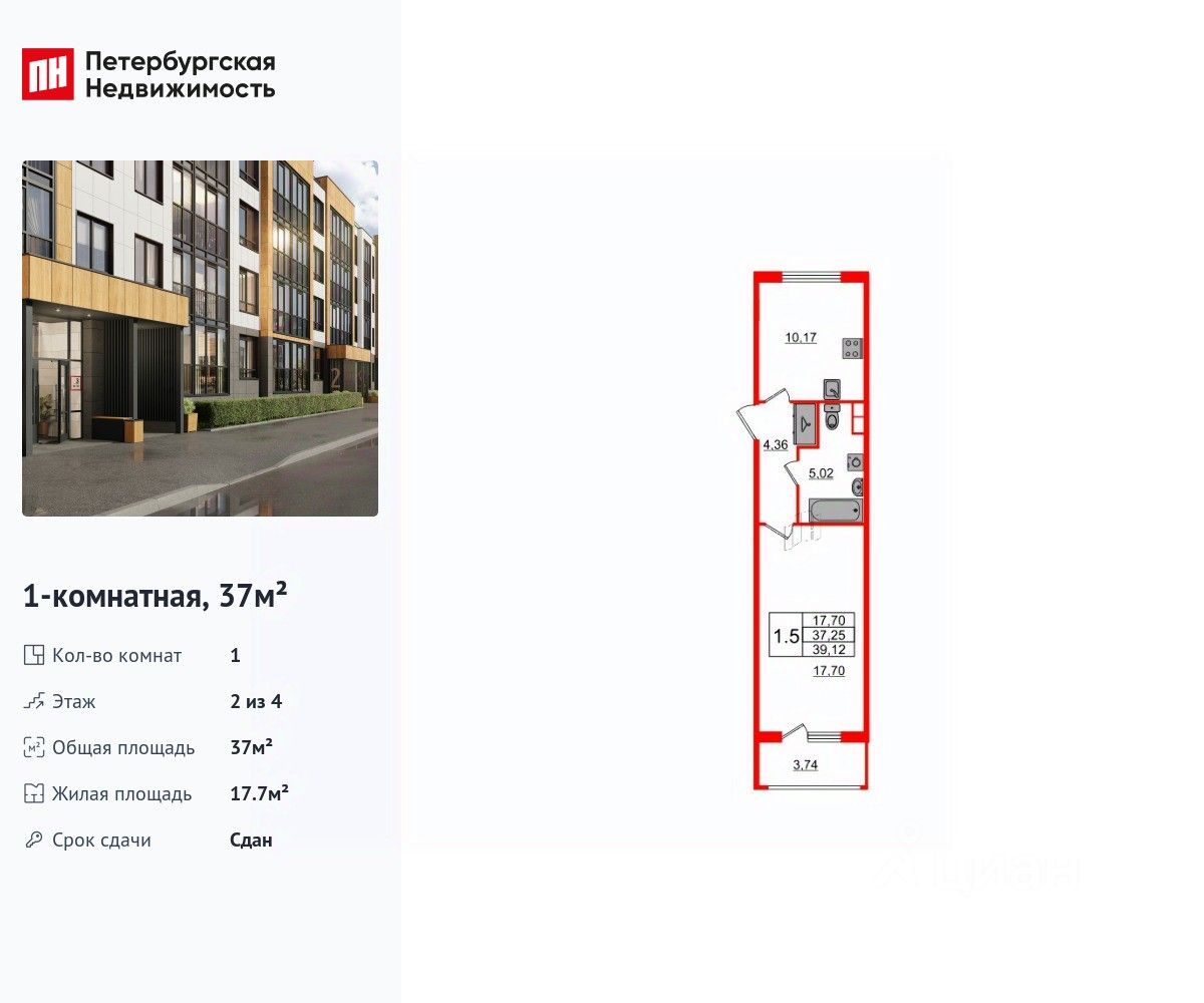 Удобная, классическая планировка, кухня 10.17 м², просторная прихожая 4.36 м². Общая площадь квартиры - 37 м², жилая 17.7 м², высота потолка 2.77 м.