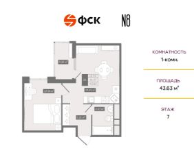 Прямая продажа от застройщика — только в этом месяце. 1-к квартира в клубном доме N8 на 7-м этаже. Общая площадь 43,63. Без отделки.