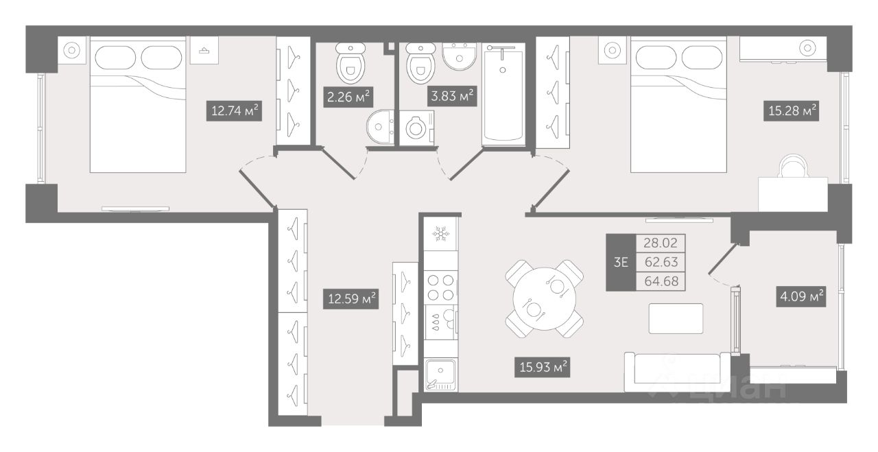 Прямая продажа от застройщика — только в этом месяце. 2-к квартира в клубном доме N8 на 2-м этаже. Общая площадь 64,68. Без отделки.