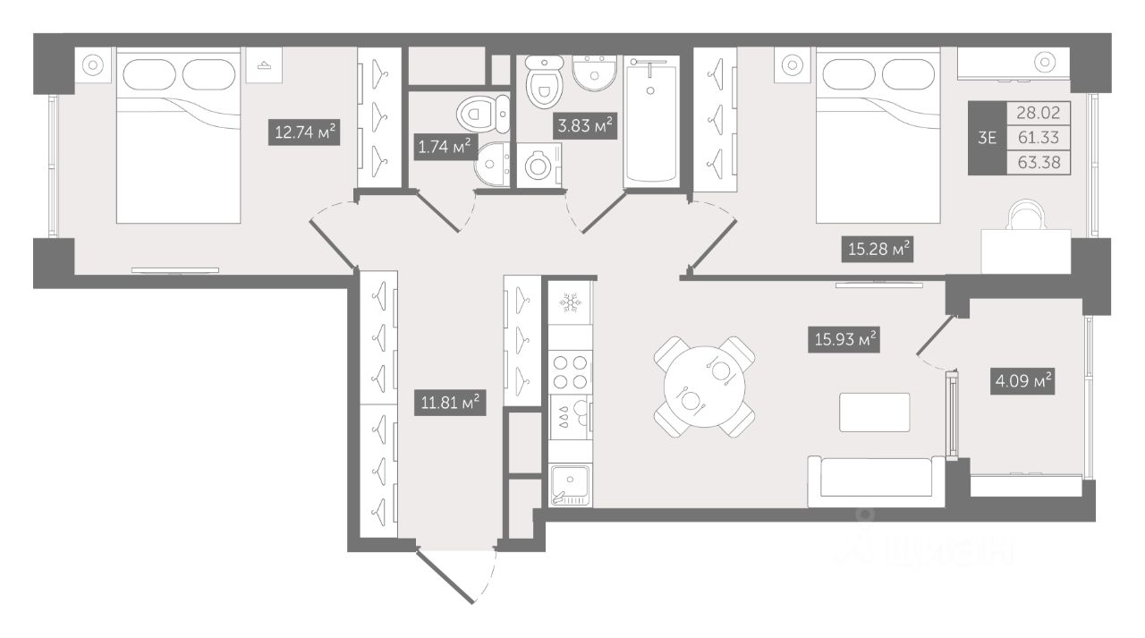 Прямая продажа от застройщика — только в этом месяце. 2-к квартира в клубном доме N8 на 7-м этаже. Общая площадь 63,38. Без отделки.