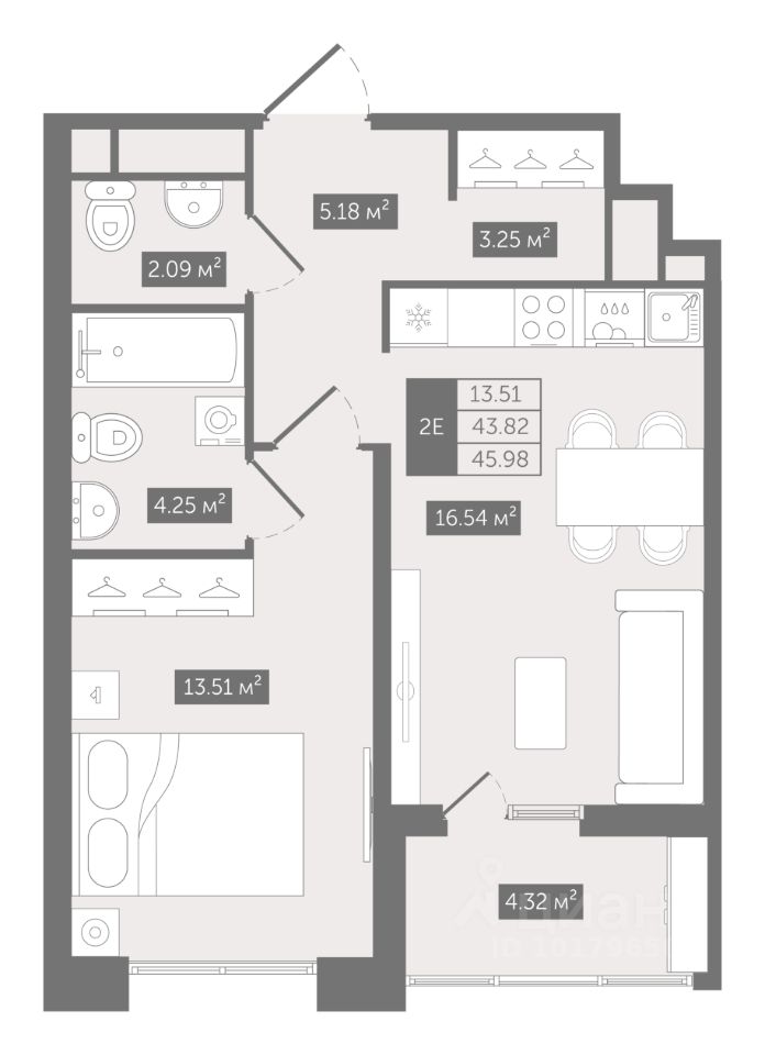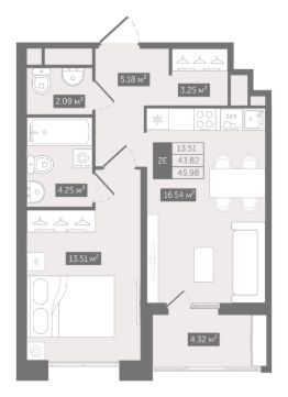 Прямая продажа от застройщика — только в этом месяце. 1-к квартира в клубном доме N8 на 8-м этаже. Общая площадь 45,98. Без отделки.