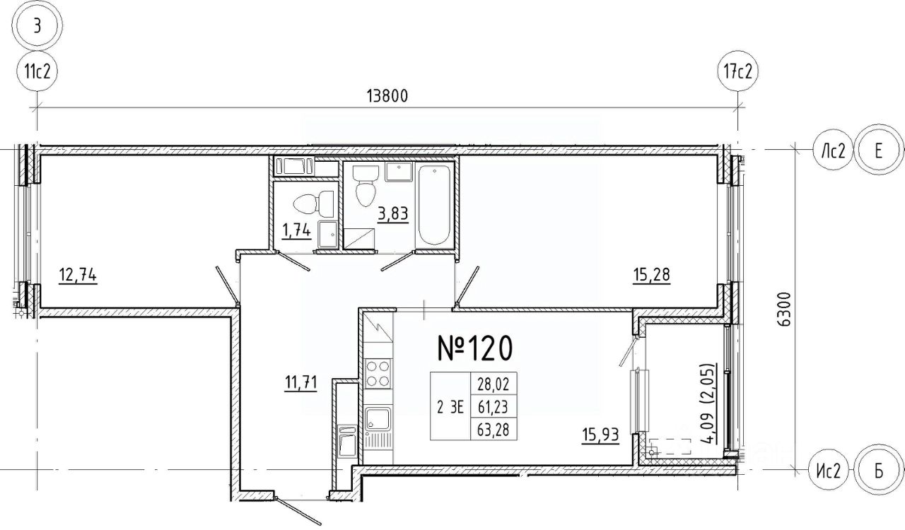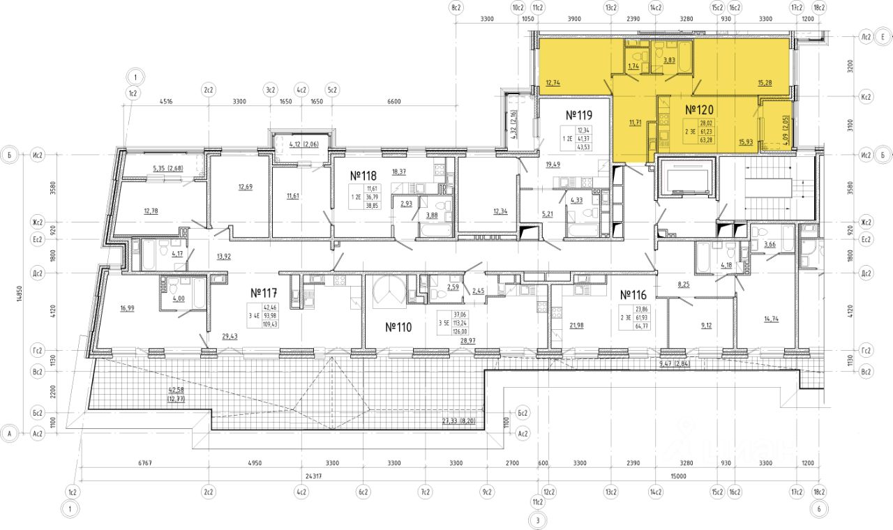 Прямая продажа от застройщика — только в этом месяце. 2-к квартира в клубном доме N8 на 10-м этаже. Общая площадь 63,28. Без отделки.
