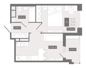 Прямая продажа от застройщика — только в этом месяце. 1-к квартира в клубном доме N8 на 6-м этаже. Общая площадь 40,31. Без отделки.