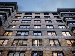 В облике дома отражены характерные черты петербургской исторической архитектуры: фактурная кирпичная кладка песочных оттенков, декоративные вставки и разностилевое остекление.