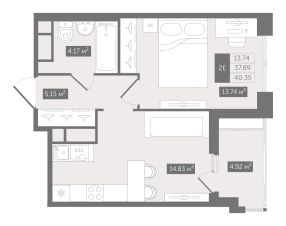 Прямая продажа от застройщика — только в этом месяце. 1-к квартира в клубном доме N8 на 7-м этаже. Общая площадь 40,35. Без отделки.