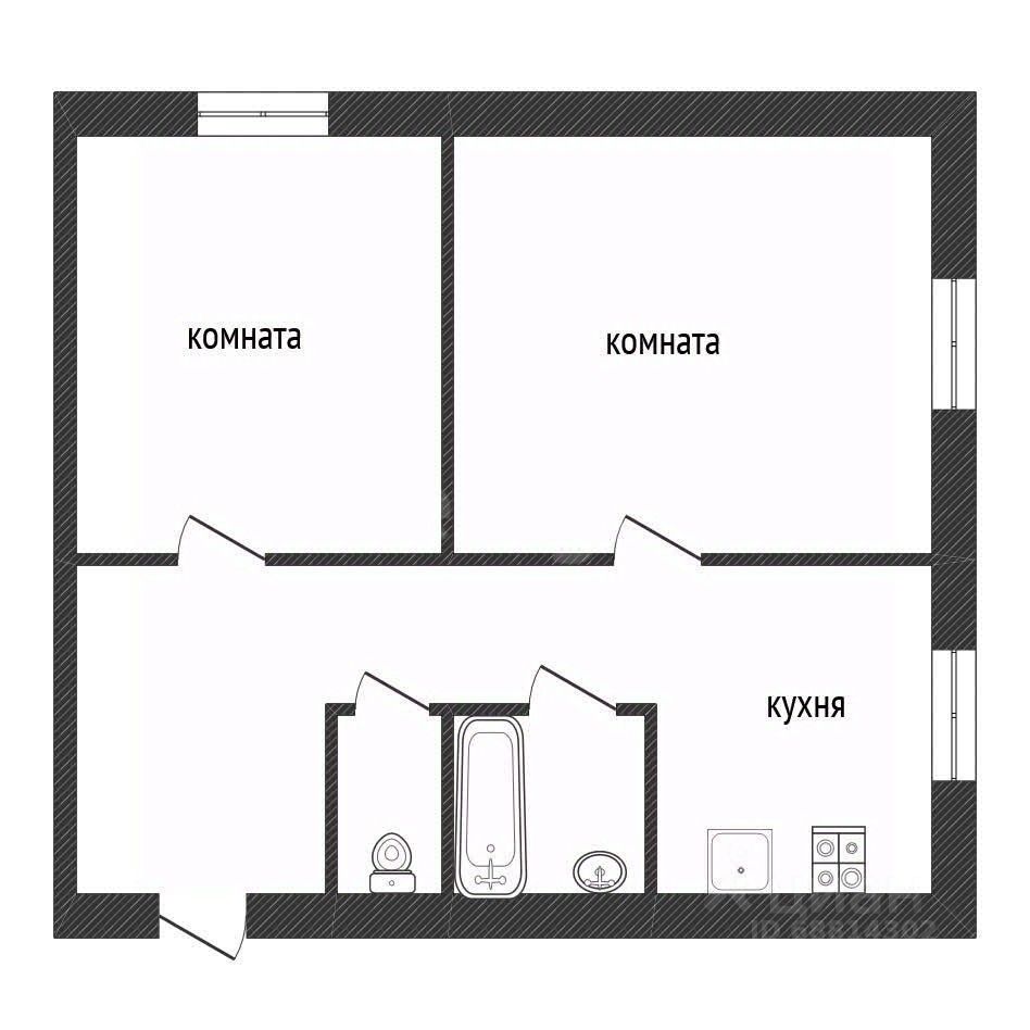 Общая площадь квартиры составляет 42,5 кв.м, комнаты площадью 16 и 14 кв.м.Кухня площадью 5,5 кв.м.
