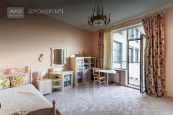 Спальные комнаты 18,8 м.кв. (с балконом 6,3 м.кв) и 17,5м.кв. с гардеробной смотрят в тихий двор. Украшением квартиры является Кабинет 12,1 м.кв. с мебелью из красного дерева, оснащен сейфом.