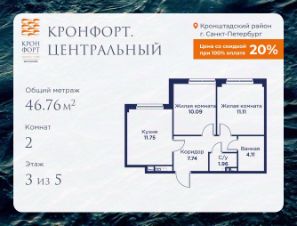 Предлагается квартира площадью 46.76 кв.м в жилом комплексе "Кронфорт. Центральный" в Санкт-Петербурге (Кронштадт). Возможна покупка с использованием льготных и специальных ипотечных программ с государственной поддержкой.