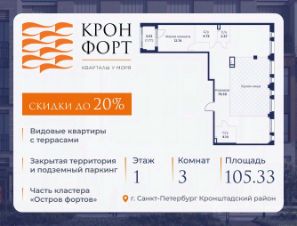 Предлагается квартира площадью 105.33 кв.м в жилом комплексе "Кронфорт. Центральный" в Санкт-Петербурге (Кронштадт). Возможна покупка с использованием льготных и специальных ипотечных программ с государственной поддержкой.