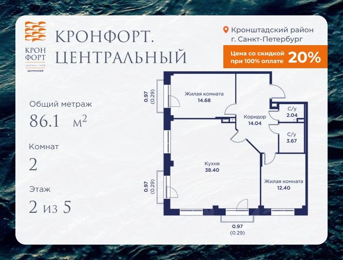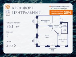 Предлагается квартира площадью 86.1 кв.м в жилом комплексе "Кронфорт. Центральный" в Санкт-Петербурге (Кронштадт). Возможна покупка с использованием льготных и специальных ипотечных программ с государственной поддержкой.