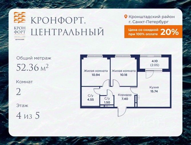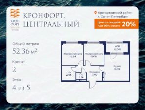Предлагается квартира площадью 52.36 кв.м в жилом комплексе "Кронфорт. Центральный" в Санкт-Петербурге (Кронштадт). Возможна покупка с использованием льготных и специальных ипотечных программ с государственной поддержкой.