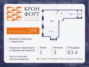Предлагается квартира площадью 83.4 кв.м в жилом комплексе "Кронфорт. Центральный" в Санкт-Петербурге (Кронштадт). Возможна покупка с использованием льготных и специальных ипотечных программ с государственной поддержкой.