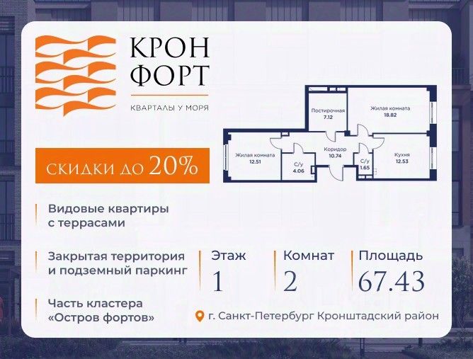 Предлагается квартира площадью 67.43 кв.м в жилом комплексе "Кронфорт. Центральный" в Санкт-Петербурге (Кронштадт). Возможна покупка с использованием льготных и специальных ипотечных программ с государственной поддержкой.
